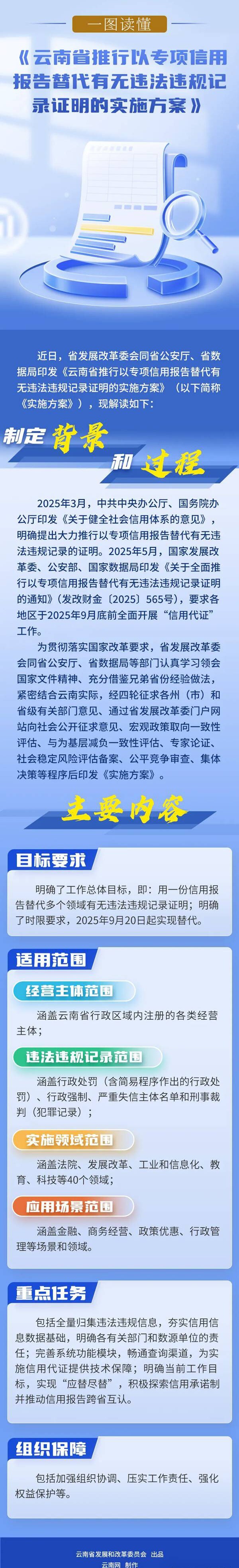 一图读懂丨《云南省推行以专项信用报告替代有无违法违规记录证明的实施方案》