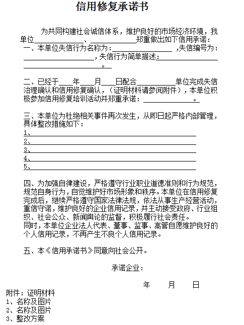 行政修复信用承诺书模板